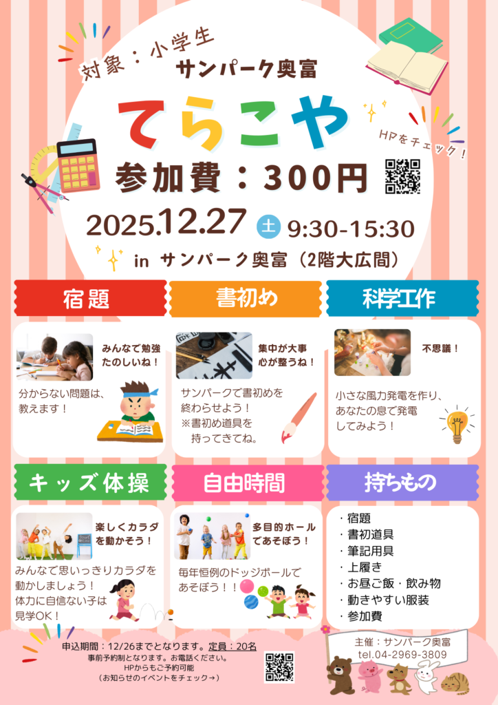 毎年大好評の【サンパークてらこや】を今年も開催いたします。