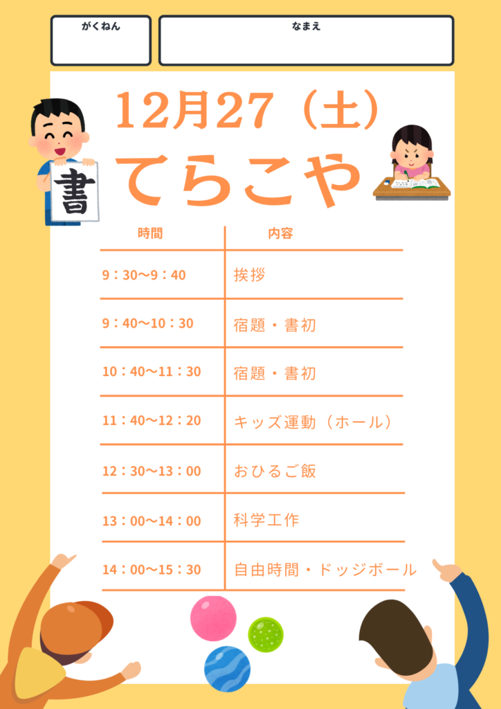 冬休みの宿題や書初め、科学工作など、みんなで一緒に楽しく勉強しましょう!